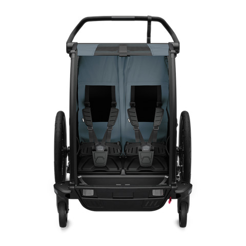 Thule Chariot Cab perfekt til familier der har brug for en pålidelig transportløsning i hverdagen. Den er konstrueret i robuste materialer, så den uden problemer kan klare daglig brug og skiftende vejrforhold. Traileren er rummelig og fremstilles i PFAS-frit stof, hvilket giver et behageligt og praktisk design - ideelt for travle familier, der ønsker en komfortabel og sikker tur for både børn og bagage året rundt. Thule VersaWing-systemet muliggør hurtig og nem konvertering mellem aktiviteter, uanset hvilket sæt der bruges. Thule Chariot Cab leveres med gå hjul, så du let kan skifte mellem cykel- og gå funktion. Derudover er den kompatibel med forskellige multisport-sæt, herunder Thule Chariot all-terrain sættet og Thule Chariot langrendssættet (sælges separat), hvilket giver mulighed for at bruge traileren til flere aktiviteter. Selvom den også kan håndtere mere ujævne underlag, fungerer den bedst som en stabil og praktisk pendlertrailer til by og forstad. Thule Chariot Cab er udstyret med komfortable, polstrede sæder, som kan delvist tages af og let rengøres. XL-sædet giver ekstra siddehøjde og sikrer bedre plads til højere børn. Praktisk enhånds-tilt-funktion, som gør det muligt at justere hvert sæde individuelt. Den inkluderede XXL opbevaring giver en ekstra rummelig kabine med hårdt bundgulv og mere end 100 liters bagagekapacitet. Letjusterbare ventiler sikrer optimal luftstrøm og temperaturregulering, mens de aftagelige klips giver ekstra ventilation, når de anvendes sammen med regnslaget.