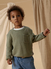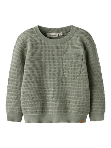 Thunder Striktrøje fra Lil' Atelier er en skøn og klassisk trøje, der kombinerer komfort med et stilfuldt udtryk. Den bløde strik er perfekt til både hverdag og festlige lejligheder, og det fine strukturmønster giver trøjen et moderne og tidløst look. Brystlommen tilføjer et praktisk og dekorativt element, mens ribkanterne sikrer en god pasform og holder trøjen på plads. Farven Seagrass er rolig og naturlig, hvilket gør trøjen nem at kombinere med andre styles i garderoben. En ideel trøje til de kølige dage, hvor dit barn skal være både varm og smart.