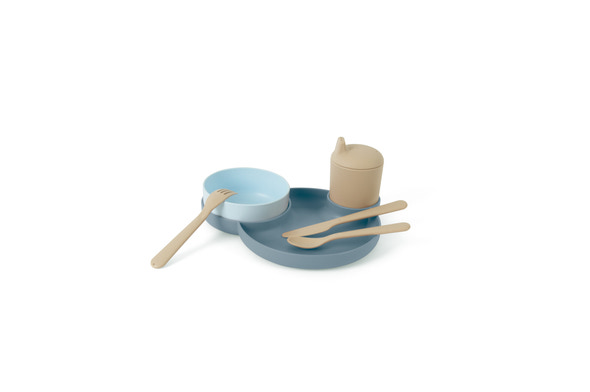 • Indeholder: Tallerken, skål, kop med tud, ske, gaffel og kniv