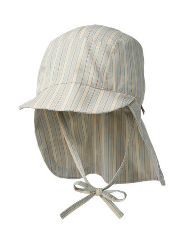 Tonga UV Solhat fra Wheat er den perfekte solhat til børn, der skal beskyttes mod solens stråler på varme sommerdage. Solhatten er designet med en lang nakke, som giver ekstra beskyttelse til både nakke og ører, og en bred skygge foran, der skærmer ansigtet. De justerbare bindebånd under hagen sikrer, at hatten bliver siddende, selv når barnet er aktiv. Det lette og åndbare materiale gør hatten behagelig at have på, og den fine stribede Blue Ocean Stripe farve giver et friskt og sommerligt look. Solhatten er ideel til strand, leg i haven eller på ferien, hvor solbeskyttelse er ekstra vigtig. Wheat har fokus på komfort og funktionalitet, så du trygt kan lade dit barn lege udendørs uden bekymring for solens skadelige UV-stråler. Hatten er nem at tage af og på, og kan vaskes efter behov, så den altid er klar til nye eventyr.