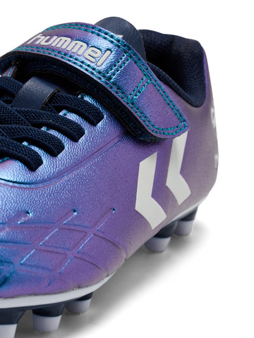 Fodboldstøvler til fast underlag. Blød kunstlæderoverdel med elastiksnørebånd og velcrolukning, blødt for i mesh og udstanset indersok. Prægninger og print på overdelen. Inspireret af hummels stolte tradition med fodboldstøvler.