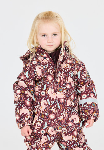 Denne printede flyverdragt til børn er en fin model til overgangs- og vinterperioderne, hvor kulden og sneen langsomt sniger sig ind. Flyverdragten fra ZigZag har et varmende polyesterfyld, som øger komforten, samtidig med at membranen holder på vind og vand væk fra kroppen. Derudover er ZigZag Tower flyverdragten designet med et smart mønster, har snøre i taljen og aftagelig hætte.
