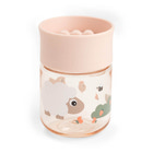 Træningskop 360° Tiny farm Pudder fra Done By Deer er den ideelle kop til små børn, der skal lære at drikke selv. Koppen har en smart 360° drikkekant, så barnet kan drikke fra alle sider uden at spilde, hvilket gør overgangen fra sutteflaske til almindelig kop nemmere og mere tryg. Den er dekoreret med søde Tiny Farm-motiver i pudder nuancer, som gør den ekstra indbydende for barnet. Koppen er lækagesikker og nem at holde for små hænder, hvilket giver barnet selvtillid og selvstændighed ved måltiderne. Fremstillet i slidstærkt materiale, der tåler daglig brug og rengøring.