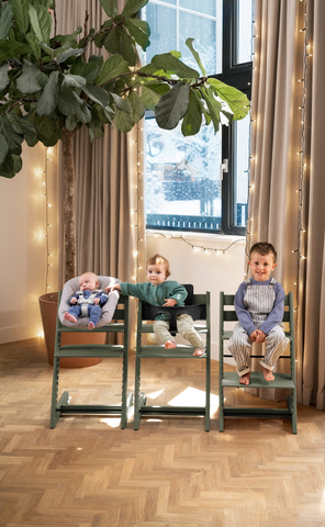 Ved tilkøb af Tripp Trapp® Newborn Set kan højstolen bruges allerede fra nyfødt, og derefter med Tripp Trapp® Babyset så er barnet med til bords lige fra begyndelsen.