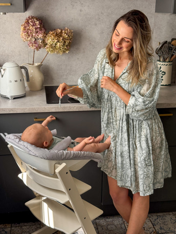 Ved tilkøb af Tripp Trapp® Newborn Set kan højstolen bruges allerede fra nyfødt, og derefter med Tripp Trapp® Babyset så er barnet med til bords lige fra begyndelsen.