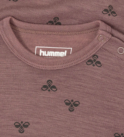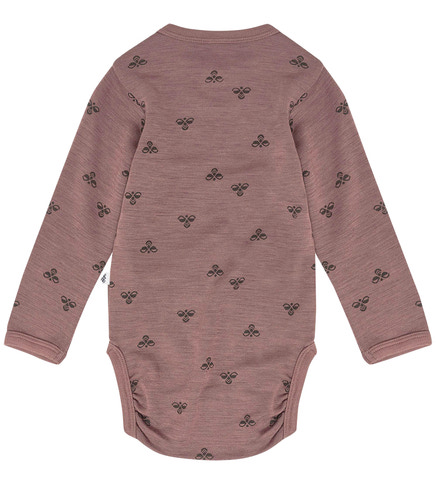 HMLMINI WOOL BODY L/S er designet i Danmark og fremstillet af en blanding af merinould og viskose for naturlig varme og blød komfort. Bodyen har en hummel logo-detalje og er produceret uden mulesing, hvilket gør den både stilfuld og ansvarligt fremstillet.