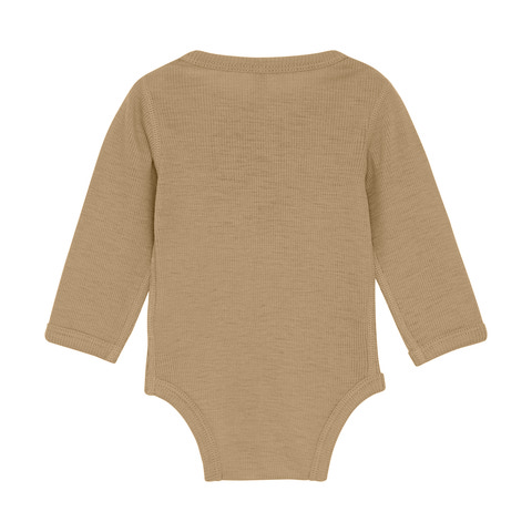 Ulden er naturligt temperaturregulerende og åndbar, hvilket gør bodyen ideel som inderste lag – året rundt. Perfekt til både leg, lur og hverdagsbrug.