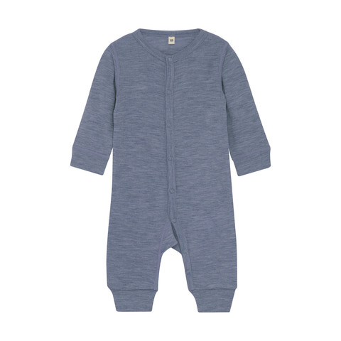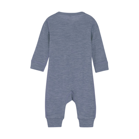 Dragten har trykknapper foran og ned langs benene, så den er nem at få af og på. Ulden hjælper naturligt med at regulere temperaturen og lede fugt væk, så dit barn holdes lunt og tørt hele dagen.