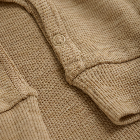 Bekids Uldjumpsuit – blød heldragt i ribstrikket uld! Denne praktiske jumpsuit fra Bekids er lavet i 100 % ribstrikket uld, som er ekstra blød og behagelig mod barnets hud. Den elastiske pasform giver god bevægelsesfrihed og komfort – perfekt til både leg og hvile.