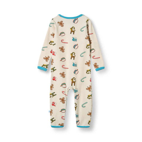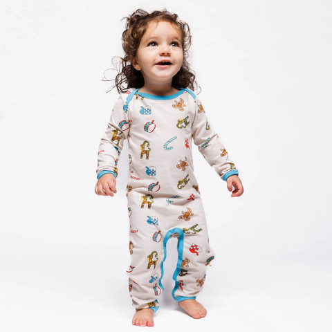 kundeservice@babysam.dkHeldragt til baby med julepynt, produceret i en økologisk og strækbar bomuldsjersey. Denne heldragt er OEKO-TEX Standard 100® certificeret, hvilket betyder at dragten er produceret og testet for skadelige stoffer, så du kan passe på dit barns hud og helbred.