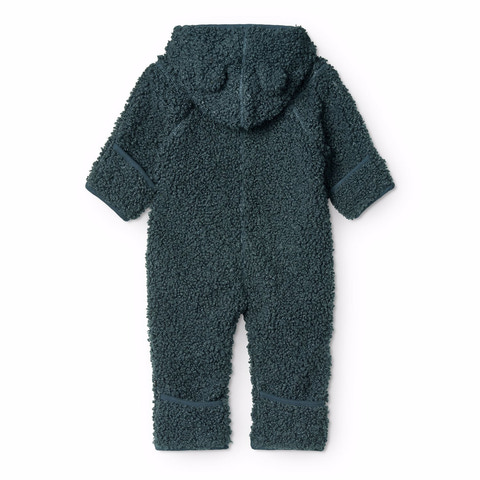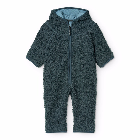 Blød fleecedragt til de mindste – lavet af genanvendt polyester og foret med behagelig bomuld. Denne hyggelige heldragt har en praktisk lynlåslukning foran, en hætte med søde bamseører og matchende ribkanter, der sikrer en god pasform. Dragten kan bruges alene eller som et ekstra lag under flyverdragten på kolde dage.