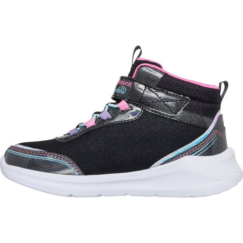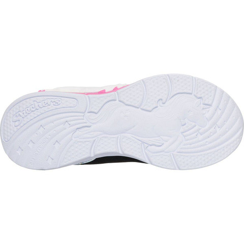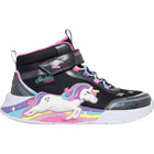 SKECHERS Unicorn Chaser - BKMT er den perfekte sko til børn, der elsker eventyr og magi. Skoen har et flot enhjørning-motiv på siden og masser af farverige detaljer, der gør den ekstra iøjnefaldende. Med blinkende lys i sålen bliver hvert skridt til en fest, og den bløde polstrede indersål sikrer komfort hele dagen. Skoen er nem at tage af og på med både velcrolukning og elastiksnøre, så den sidder godt på foden. Den lette og fleksible ydersål giver god bevægelsesfrihed, og skoen er ideel til både leg og hverdag. Et hit for alle små enhjørningefans!