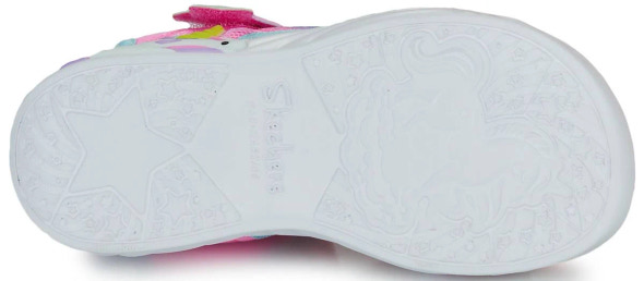 Unicorn dreams sandal fra SKECHERS er den perfekte sommersandal til børn, der elsker eventyr og magi. Sandalen har et farverigt regnbuedesign med glitrende detaljer, der gør den ekstra festlig. Den bløde og stødabsorberende sål sikrer komfort hele dagen, uanset om det er på legepladsen eller til sommerfesten. Med justerbare velcroremme er sandalen nem at tage af og på, og den sidder godt på foden. Den dekorative stjerne og den søde enhjørning på siden giver sandalen et unikt og fantasifuldt udtryk, som vil glæde enhver lille eventyrer..