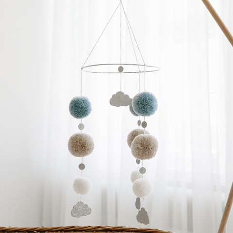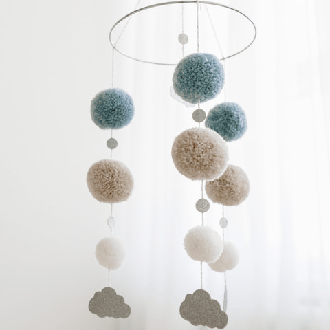 kundeservice@babysam.dkSmuk kombination af håndlavede uld pom poms og skinnende detaljer engagerer din babys fascination af form og farve. Neutrale og pastelltoner giver en delikat indretning til babyens værelse