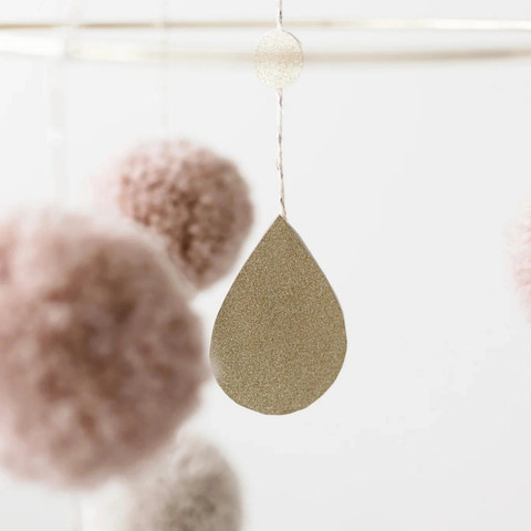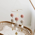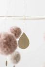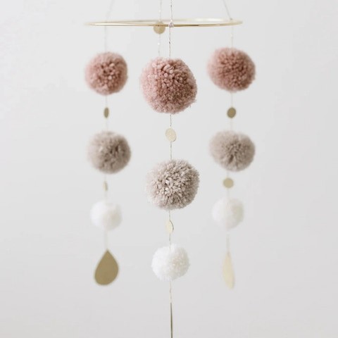 Smuk kombination af håndlavede uld pom poms og skinnende detaljer engagerer din babys fascination af form og farve. Neutrale og pastelltoner giver en delikat indretning til babyens værelse