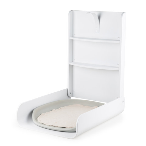Det væghængte puslebord er en smart og pladsbesparende løsning til badeværelset, soveværelset eller andre små rum, hvor du gerne vil have en funktionel pusleplads. Med sit lette og svævende udtryk passer puslebordet perfekt ind i moderne indretning – uanset om det er åbent eller lukket. Når du har din baby på armen og hurtigt skal skifte en ble, sikrer puslebordets låsemekanisme, at du nemt kan folde bordet ned med én hånd. Låsemekanismen er fremstillet af formbøjet træ, som du kender det fra Sebra Sengen, og holder bordet spændt fast, når du folder det op. På de to integrerede hylder, der er synlige, når bordet er slået ned, er der plads til de vigtigste pusle-nødvendigheder. Sebra Puslepuden passer perfekt på puslebordet og bliver på sin plads, når du folder bordet op og ned. Puslebordets høje, afrundede kanter skaber en tryg og sikker pusleplads for både dig og dit barn. Skab en god arbejdsstilling ved det væghængte puslebord, når du monterer det i den højde, der passer til dig.