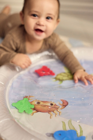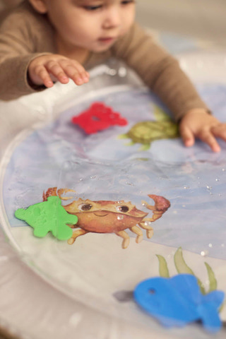Forestil dig glæden ved, at dit barn opdager en verden under bølgerne. FILIBABBAs vandlegemadras inviterer babyer til et fortryllende undervandseventyr, hvor farverige havdyr svømmer gennem blide bølger. Det er et rum, hvor nysgerrigheden kan blomstre, og hvor mave-tid bliver en rejse fyldt med undren og opdagelse.