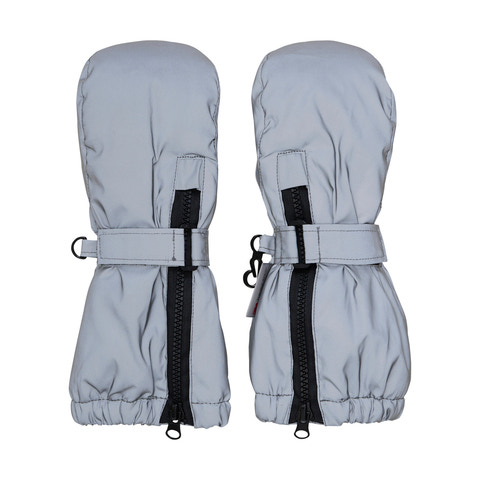 Refleks vanter fra Minymo. Vanterne holder barnets hænder varme og tørre. Vanterne lukkes med en skjult lynlås og en velcrostrop øverst. Vanterne er åndbare og vind- og vandtætte.