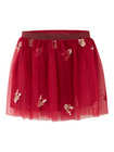 Veross tyl nederdel fra NAME IT er et skønt valg til både festlige lejligheder og hverdagsbrug. Nederdelen er fremstillet i let og blødt polyester, der giver en flot fylde og et elegant udtryk. Den elastiske talje sikrer, at nederdelen sidder behageligt og nemt kan tilpasses barnets krop, så der er plads til leg og bevægelse. Den smukke røde farve, JESTER RED, gør nederdelen til et iøjnefaldende og stilfuldt valg, der kan matches med både en fin bluse eller en afslappet t-shirt. Nederdelen har et blødt for, som føles behageligt mod huden, og den lette tyl giver et feminint og festligt look. Et alsidigt stykke tøj, der hurtigt bliver en favorit i garderoben.