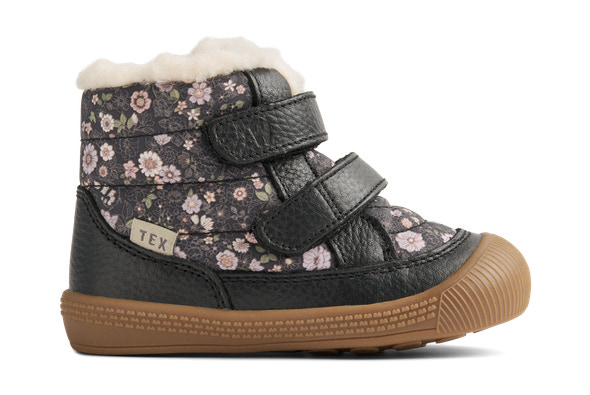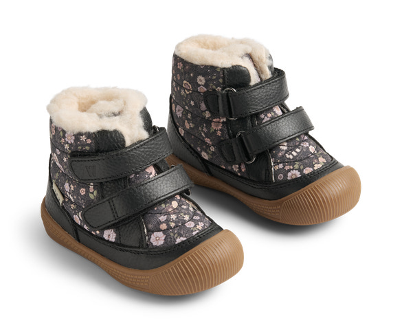 Wheats vinterstøvler har et behageligt og varmt uldfoer med en Tex-membran, der er 100 % åndbar og vandtæt, hvilket er praktisk til efterårs- og vintersæsonerne, da det holder de små fødder både varme og tørre. Disse pre-walker støvler er lavet i en kombination af LWG-certificeret læder og smukt trykt tekstil. Som en sød detalje fås støvlerne med et unikt håndtegnet print lavet af vores interne designteam.