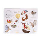 Dreamy Adventurers sættet indeholder 20 smukt illustrerede klistermærker med blandt andet en lille mus i en luftballon, funklende stjerner og bløde skyer. Håndtegnede eventyrere svæver gennem himlen, på jagt efter nye eventyr og tilføjer et vidunderligt charm til dit barns rum.