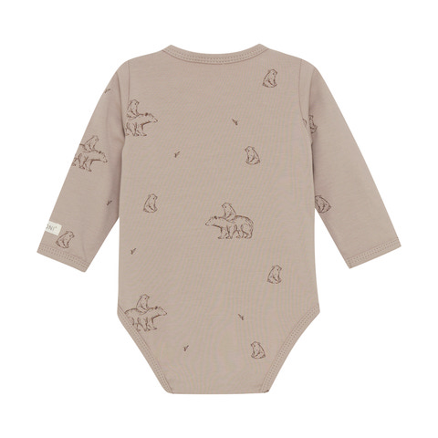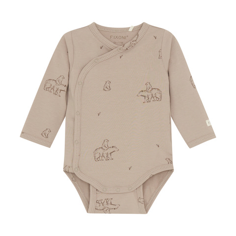 kundeservice@babysam.dkLangærmet slå-om-body med all-over-print fra FIXONI. Bodyen åbnes nemt med trykknapper foran og mellem benene, hvilket gør den praktisk ved både påklædning og bleskift.