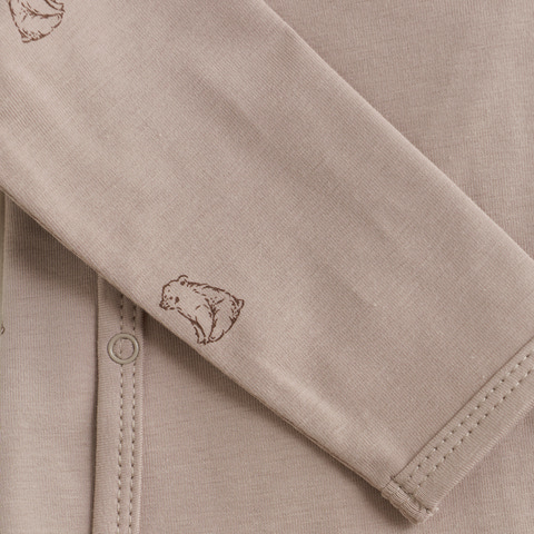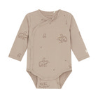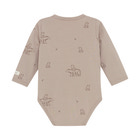 Langærmet slå-om-body med all-over-print fra FIXONI. Bodyen åbnes nemt med trykknapper foran og mellem benene, hvilket gør den praktisk ved både påklædning og bleskift.