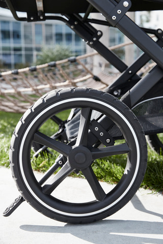Reflekser: Indbyggede reflekser på hjulene sikrer, at du og din barnevogn er synlige i mørke eller dårlige lysforhold. Øget sikkerhed for både dig og dit barn.