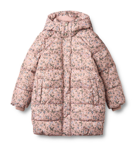 Lang pufferjakke i print med aftagelig og justerbar hætte til børn. Wheats pufferjakke med teknisk polstring er perfekt til de mange kolde efterårs- og vinterdage. Den er designet med høj holdbarhed og komfort, da den er vand-, vind- og smudsafvisende og dermed nem at rengøre. Jakken har et enkelt og klassisk look med praktiske detaljer som aftagelig og justerbar hætte, stormmanchetter og skrålommer.