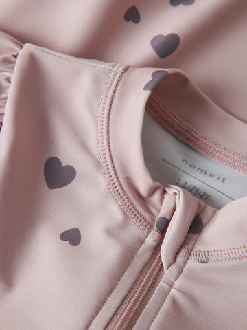 kundeservice@babysam.dkZippa UV Heldragt fra NAME IT i farven Burnished Lilac er det perfekte valg til solrige dage ved stranden eller poolen. Dragten er designet med et yndigt print af små hjerter og fine flæser på skuldrene, som giver et ekstra sødt udtryk. Materialet består af en blanding af polyester og elastan, hvilket gør dragten både blød, fleksibel og hurtigtørrende – ideelt til aktive børn, der elsker at lege i vandet. Den lange lynlås foran gør det nemt at tage dragten af og på, og de lange ærmer og ben sikrer god dækning mod solens stråler. Med denne heldragt får dit barn både komfort og beskyttelse, så I trygt kan nyde sommerens udendørsaktiviteter. Dragten er let at vedligeholde og holder formen, selv efter mange ture i vandet. Perfekt til både ferie og hverdagsbrug, hvor solbeskyttelse og bevægelsesfrihed er i fokus.